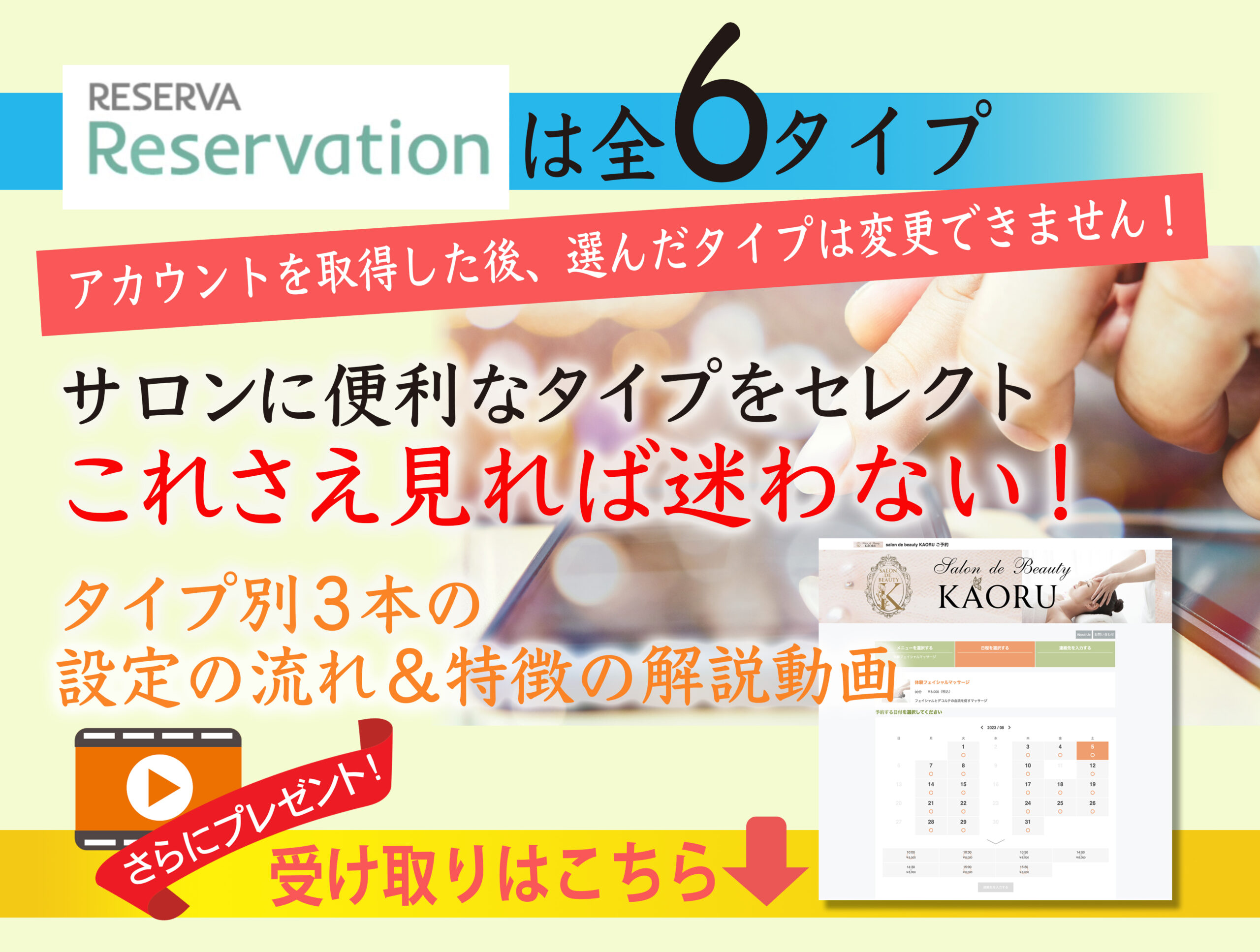 RESERVA予約システムはアカウントを取得し一旦タイプを選ぶと、タイプの変更ができません。